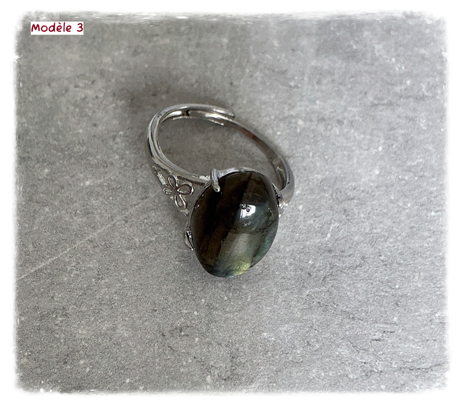 Bagues ajustables LABRADORITE (10 x 14 mm)