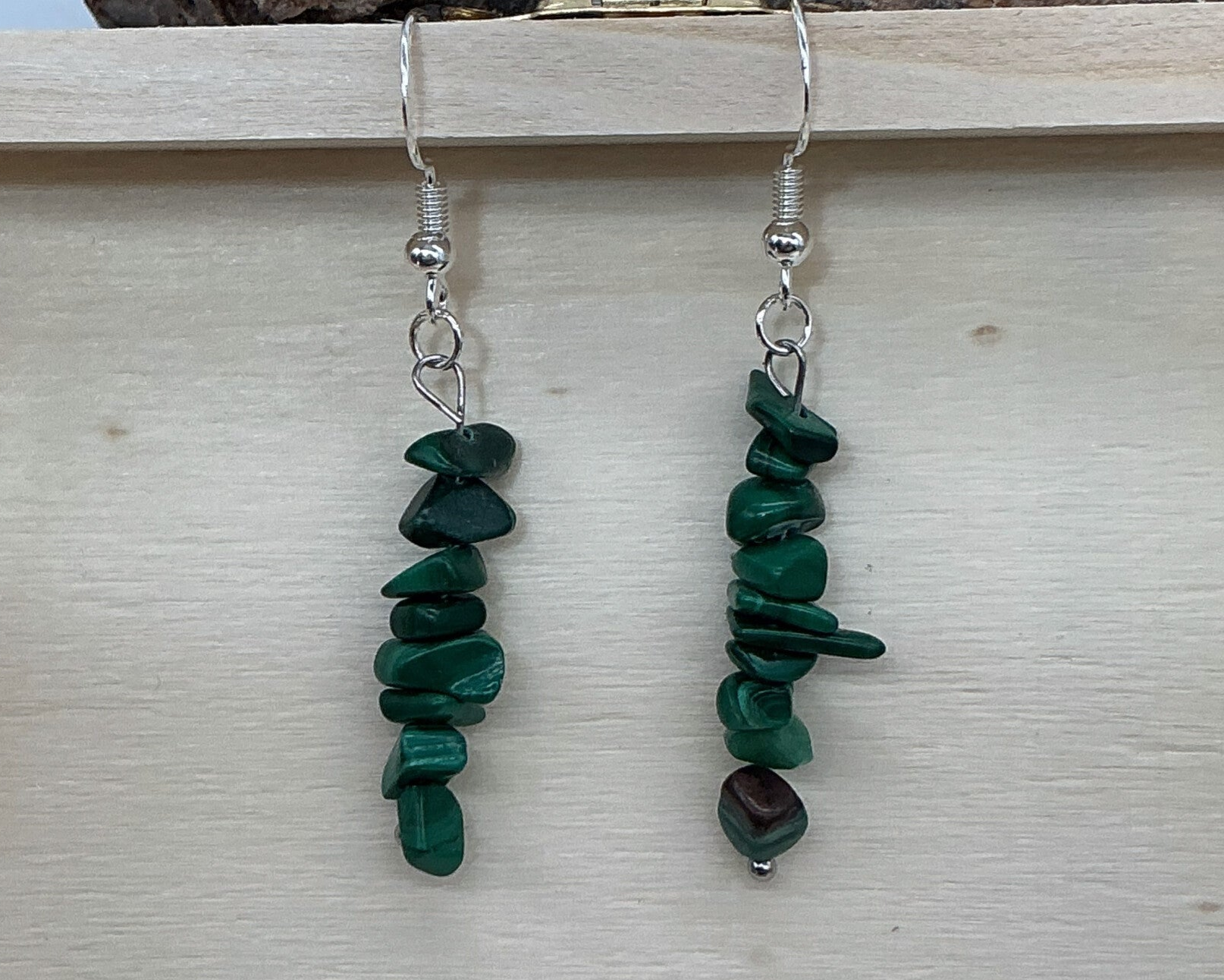 Boucles d'oreilles en chips de malachite - Création DS - Pièce unique