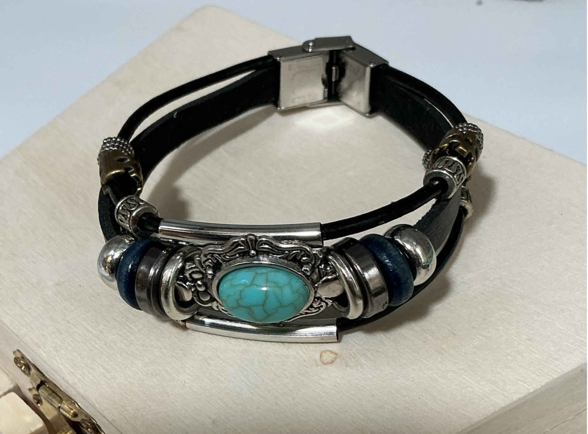 Bracelet en cuir orné d'une turquoise
